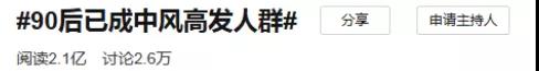 之后,#90后已成中风高发人群#这一话题再次冲上热搜: