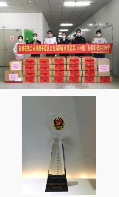 2月25日,白鸽在线向平潭实验区公安局捐赠1000瓶抑菌消毒喷雾、4000个一次性医用口罩,总价值5.5万元。向奋战在抗疫前线的警务人员提供后勤保障,为助力防疫阻击战略尽绵薄之力。
