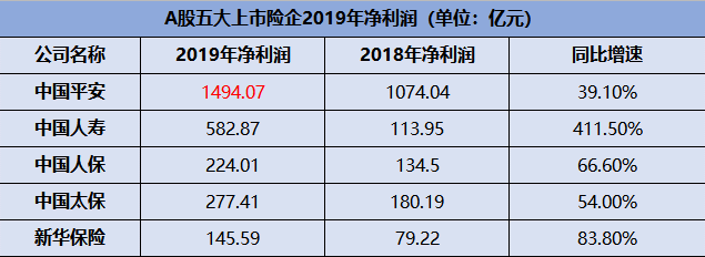 (数据来源:上市险企2019年年报)
