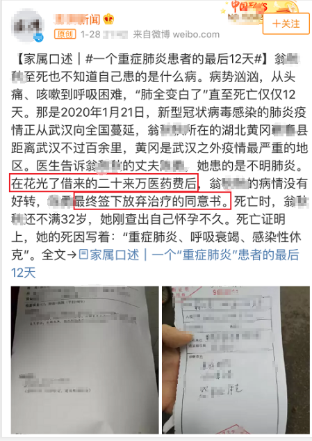 如果她再熬一熬,再等一等,也许就等到了政府的“为确诊患者和疑似患者承担医疗费”,也许就多了一份活下去的希望。