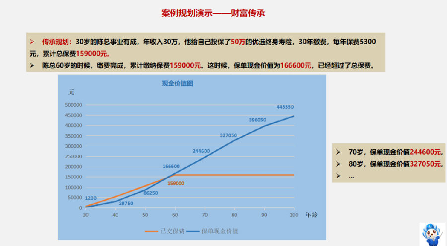 终身寿险有储蓄的功能。这款优选终寿越到后期,现金价值越高。