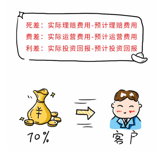 分红保险可分配盈余的70%分配给客户)