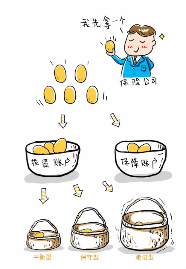 剩下的钱分别计入保障账户投资账户