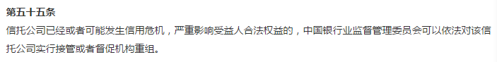 新时代信托股份有限公司、新华信托股份有限公司触发了《中华人民共和国银行业监督管理法》第三十八条和《信托公司管理办法》第五十五条规定的接管条件。