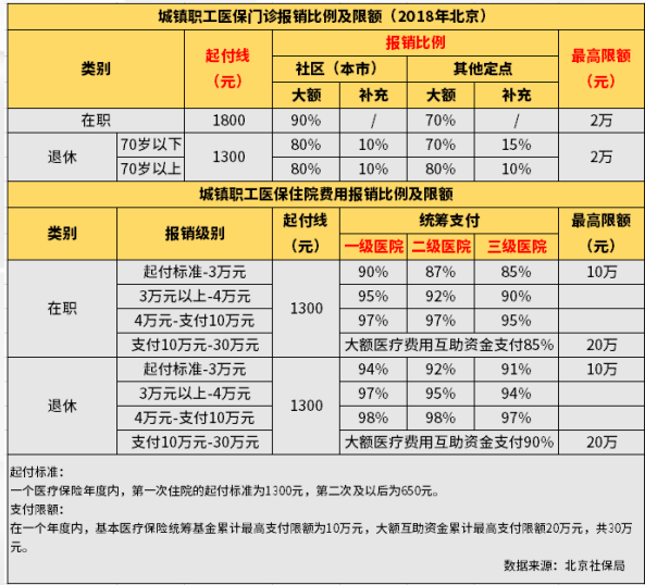 第二,封顶线。超过封顶线以上的费用也是要自己承担的。就像北京,门诊的封顶线是2万,住院的封顶线是30万。