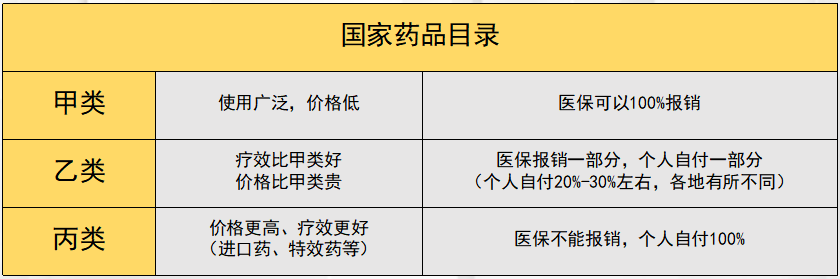 第四点,医保的用药限制。国家药品目录将药品分为甲乙丙三类,甲类药品使用广泛,价格低,可以通过医保报销。乙类药品疗效比甲类好,价格也比甲类贵,医保可以报销一部分,个人也需要自付一部分。丙类药品价格更高、疗效更好,比如进口药、特效药等等,但是医保不能报销。一旦碰上大病,想要用疗效更好的进口药、特效药,就都得自己掏腰包了。
