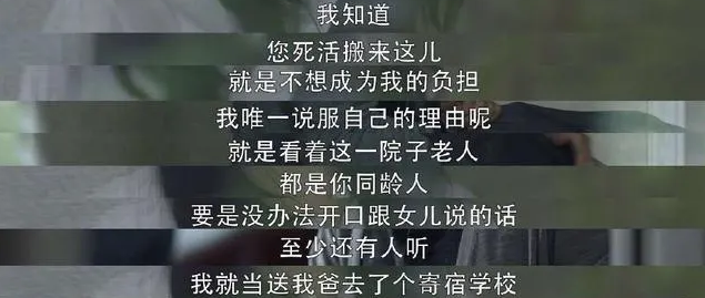 于是,顾佳给了父亲三种选项:找保姆,跟他们一起住,安监控。无奈父亲都没有选择,最后顾佳给父亲找了一家养老院。