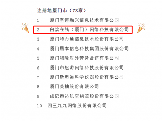 近日,省金融监管局根据 《福建省推动企业直接融资专项资金管理暂行办法》 (闽财金〔2020〕5号)和《福建省地方金融监督管理局关于组织做好2020年度省重点上市后备企业报送工作的通知》(闽金管〔2020〕20号)有关规定,复核挑选出352家企业拟入2020年度福建省重点上市后备企业名单,白鸽在线(厦门)网络科技有限公司(以下简称“白鸽在线”)位列其中。