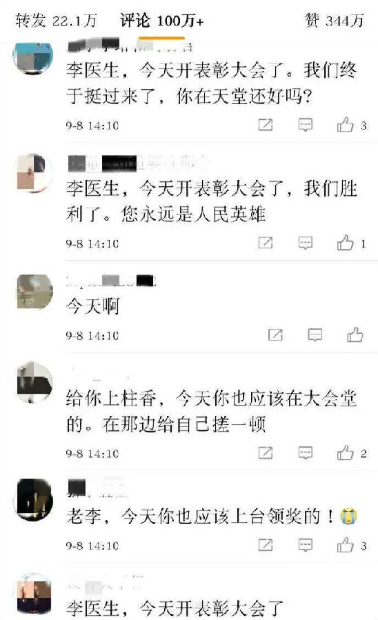 随着9月8日全国抗击新冠肺炎疫情表彰大会在北京人民大会堂的隆重举行,无冕英雄李文亮医生的事迹,又再次回到大众面前。