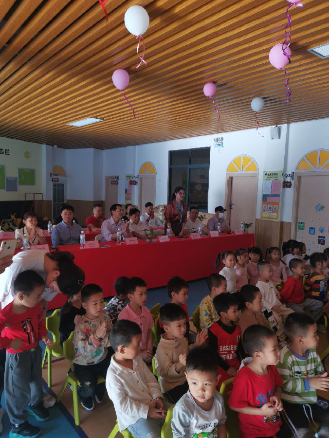 在主持人介绍完参会的领导嘉宾后,来自北斗星幼儿园的小朋友们为现场的领导嘉宾们献上精心准备的舞蹈节目,在秋风温柔的吹拂下,显得别样的美好。为感谢小朋友们的精彩演出,白鸽在线特地为他们准备了精美可爱的白鸽抱枕作为答谢。演出过后,本次公益活动正式开始。