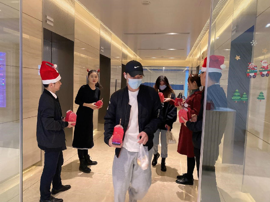 圣诞节前夕,白鸽在线管理层在公司大门为员工们送上平安夜祝福,并附送提前准备好的苹果,希望所有的白鸽小伙伴们在新的一年中都能够平平安安。