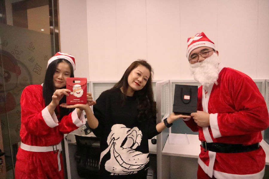 此次的圣诞节举行了礼物互换活动,白鸽在线的小伙伴们早早的将自己的心意准备好并进行了精美的包装统一摆放于圣诞树下。当天中午,白鸽在线通过自主研发的程序为所有员工随机抽取圣诞礼物,并于下午统一发放。