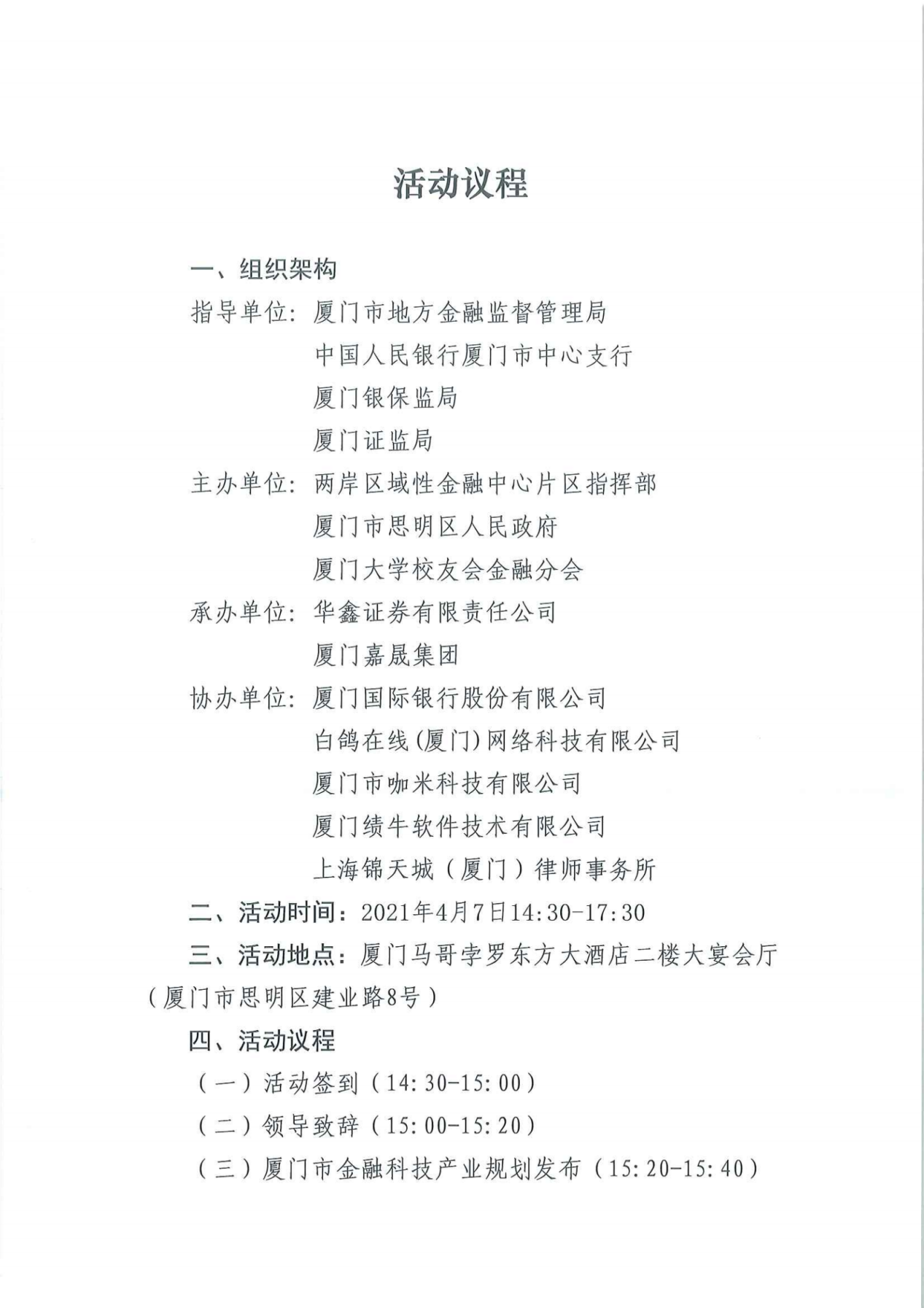 本次金融科技论坛将于4月7日举办,由厦门市地方金融监督管理局、中国人民银行厦门市中心支行、厦门银保监局、厦门证监局指导,两岸区域性金融中心片区指挥部、厦门市思明区人民政府、厦门大学校友会金融分会主办。届时将邀请厦门市政府及相关部门、厦门大学领导及金融、科技业界校友等,共话厦门金融科技产业发展机遇与成果!