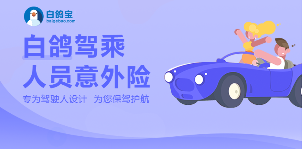 白鸽驾乘人员意外险,车主投保全家受益,营运家用均可保,最高保额10万/座。