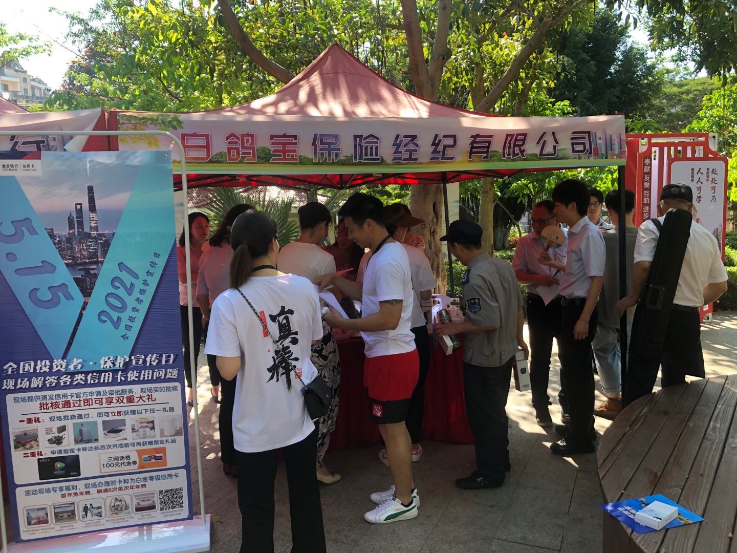活动开始后,白鸽宝的展位便被热情的市民围得水泄不通,大家踊跃参与回答问卷赢取奖品。此次白鸽宝作为协办单位还充分发挥了行业特色,不仅准备了与党史结合的活动环节,更为市民们带来了普惠保险“赠险活动”和白鸽周边礼品等贴心福利。