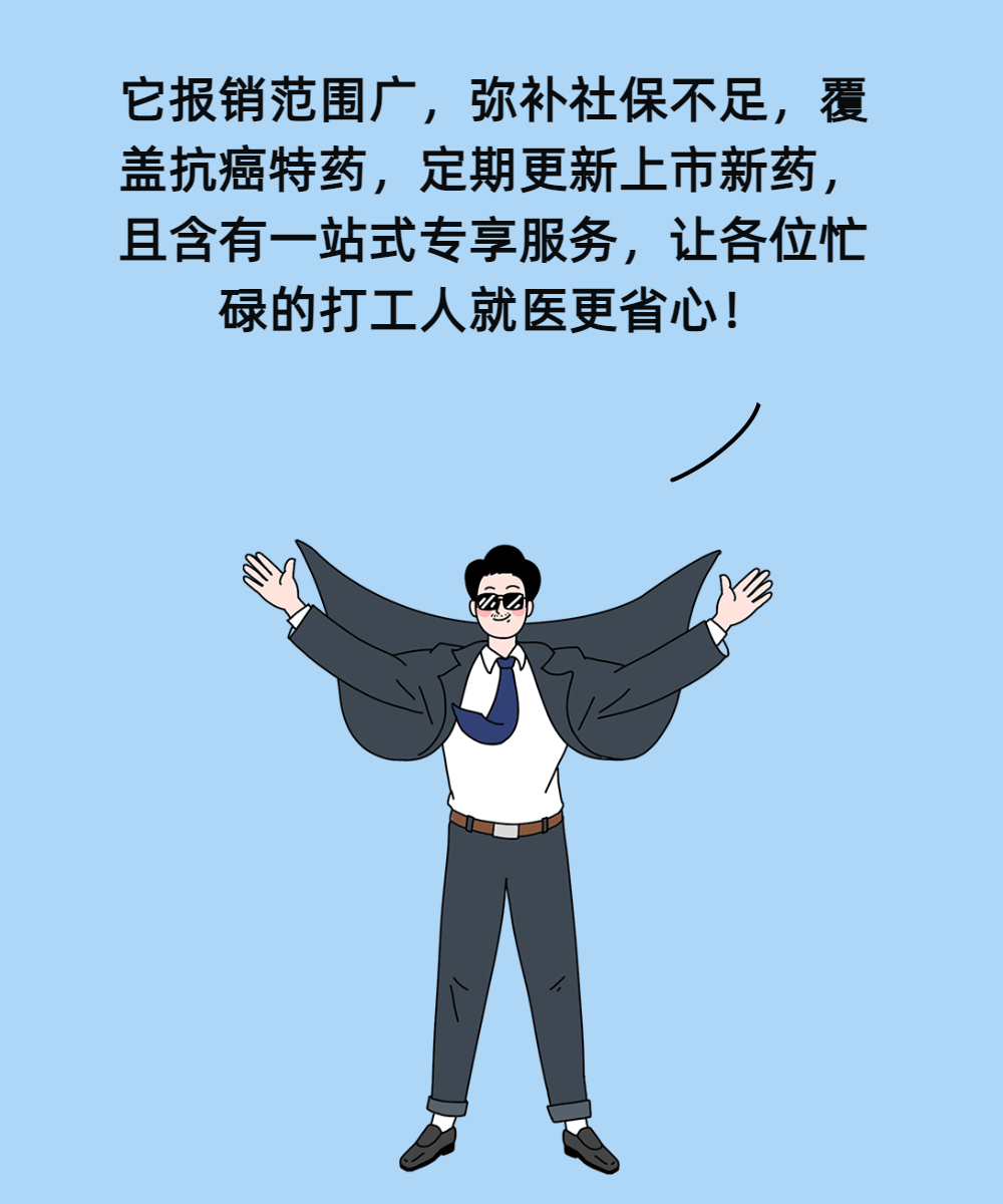 它报销范围广,弥补社保不足,覆盖抗癌特药,定期更新上市新药,且含有一站式专享服务,让各位忙碌的打工人就医更省心!