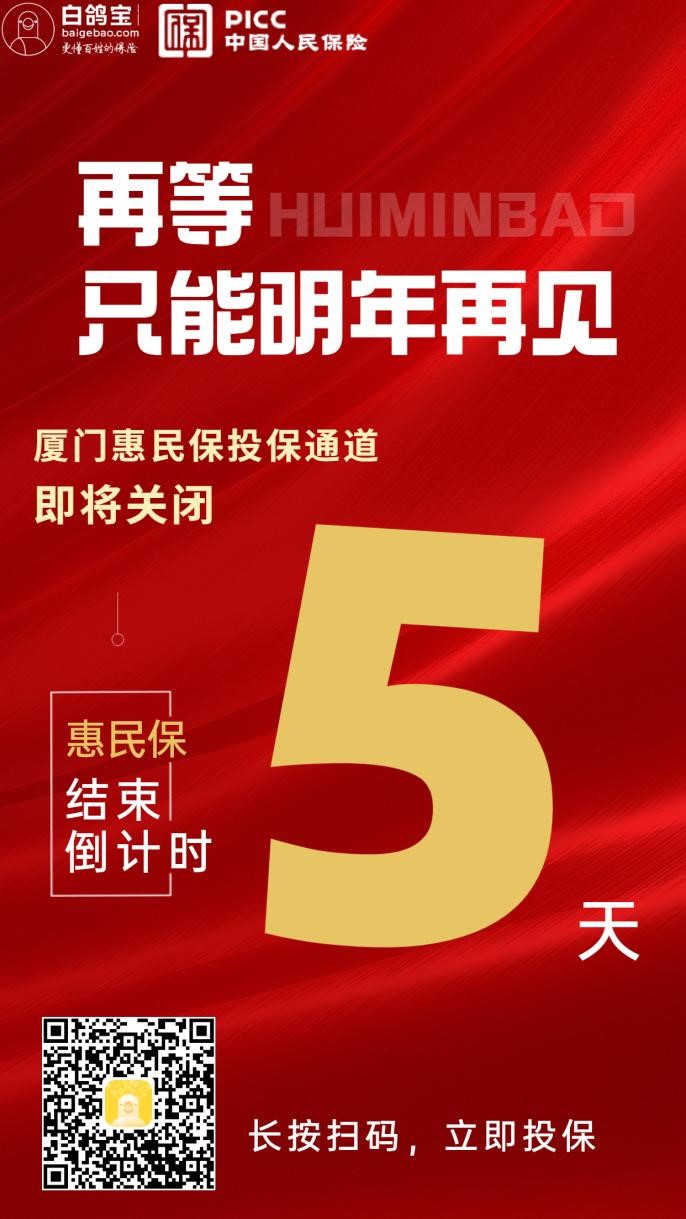 倒计时五天!错过再等一年!厦门惠民保即将截止投保!!