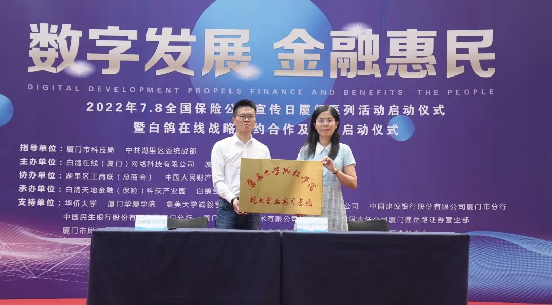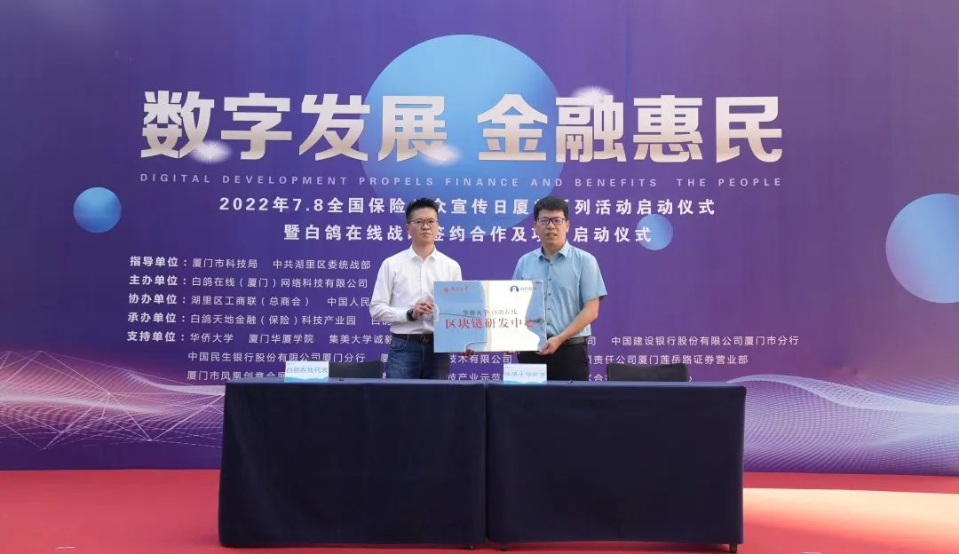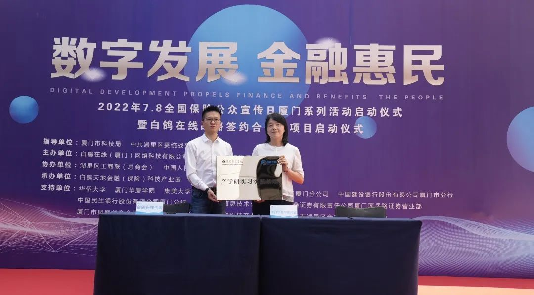 2022年7月8日上午,“7.8全国保险公众宣传日”厦门系列活动启动仪式暨白鸽在线战略签约合作及项目启动仪式在厦门市湖里区白鸽天地金融(保险)科技产业园圆满落幕。