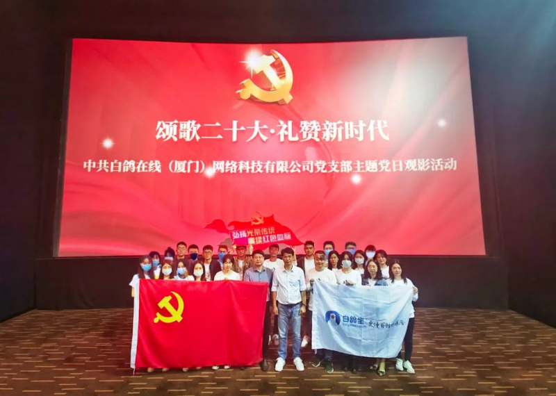 近日,为牢牢把握党的二十大关于坚定不移全面从严治党,深入推进新时代党的建设新的伟大工程的要求,中共白鸽在线(厦门)网络科技有限公司党支部(以下简称“白鸽在线党支部”)组织党员观看了红色电影《让这首歌作证》。