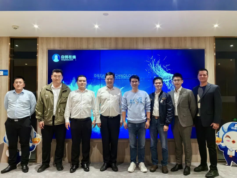 2023年12月7日,盐城大数据集团党委委员、总会计师翟洪文一行莅临白鸽在线参观交流,白鸽在线创始人、董事长涂锦波携高管团队接待。