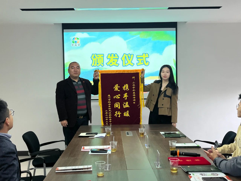 为感谢“小花伞公益保障项目”的爱心之举,沐风社会服务中心特制作感谢锦旗,并由其执行理事陈智勇为“小花伞”公益保障项目组进行了颁发。