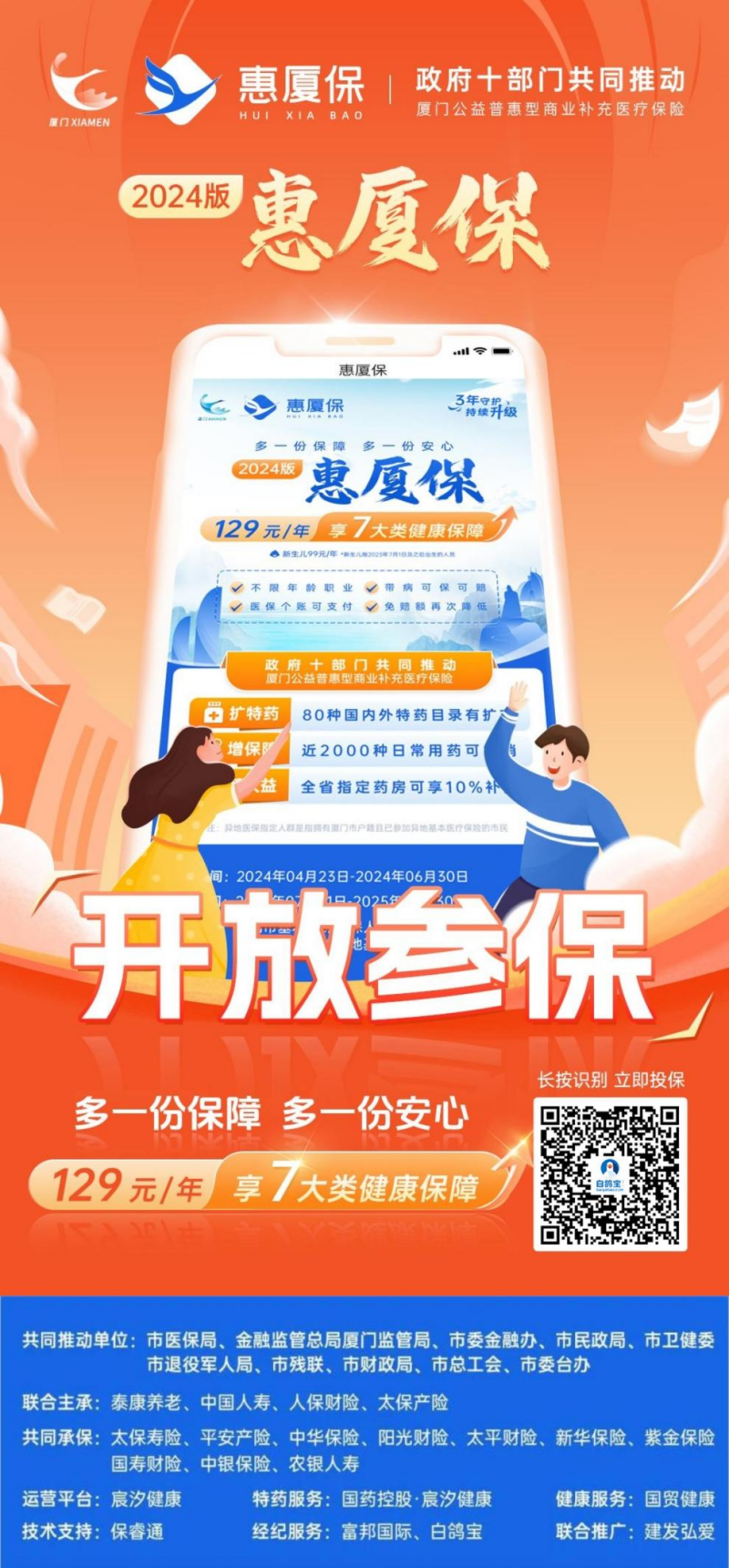 “惠厦保”是在市医保局、国家金融监管总局厦门监管局、市委金融办、市民政局、市卫健委、市退役军人事务局、市残联、市财政局、市总工会、市委台办十部门的共同推动下,会同承办保险公司专为厦门定制的公益普惠型商业补充医疗保险。通过对基本医疗保险进行补充,有效减轻参保群众大病医疗费用负担,让市民就医更有“医”靠,兜稳兜牢民生底线。