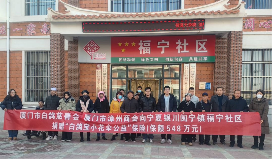 此次活动,厦门市白鸽慈善会联合厦门市漳州商会在闽筹集公益基金,并为福宁社区的25位低保困境儿童、7位残疾儿童和6位乡村振兴网格员投保了“白鸽宝小花伞公益集体保险”。该保险由中国人寿宁夏分公司设计并承保,涵盖了学平险、残疾险及意外险等,保额总价值高达548万元,切切实实为福宁社区的困境儿童和残疾儿童带来了生活与健康保障,并为乡村振兴网格员的工作提供助力,让他们能够更加安心地投入到乡村振兴的各项工作中去,展现闽宁两地东西帮扶协作的温暖力量。