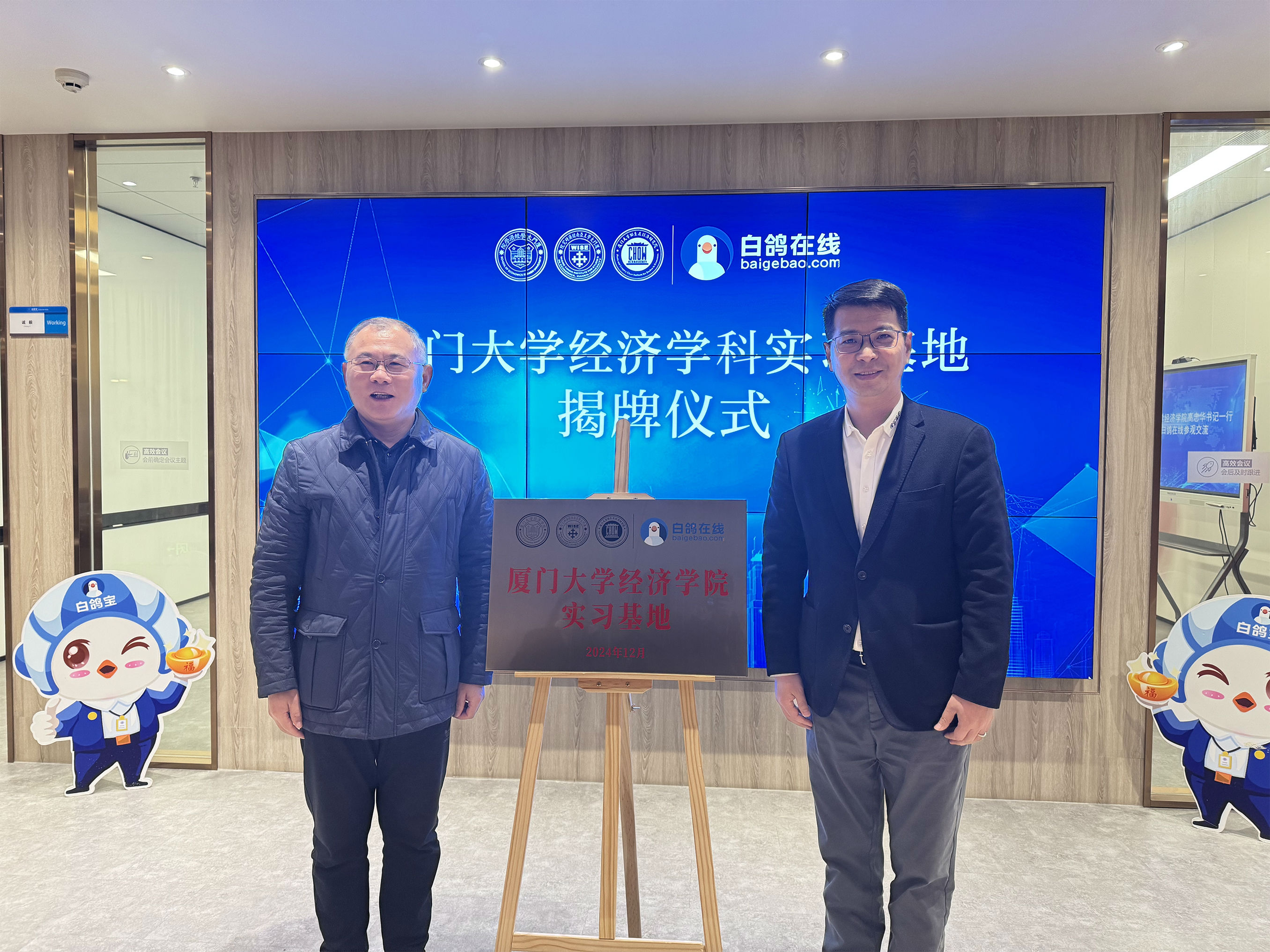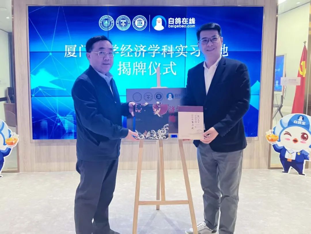 2月28日,厦门大学经济学院与白鸽在线共建实习基地揭牌仪式在白鸽在线总部举行。