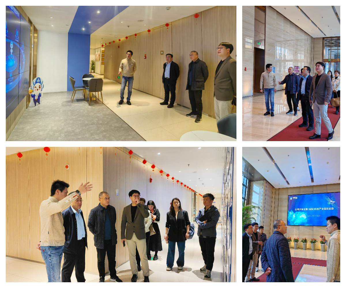 期间,高忠华一行参观了白鸽天地金融(保险)科技产业园、白鸽在线总部。白鸽在线执行副总裁施文铮分别就科技产业园与白鸽在线大数据可视化平台进行了详细的介绍与交流。