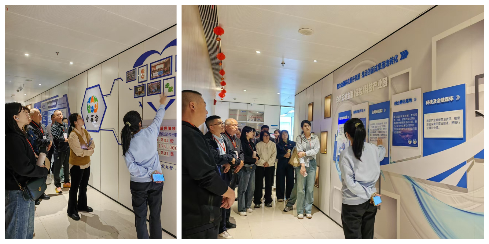 洪蓉蓉重点介绍了白鸽在线以“围绕发展抓党建,抓好党建促发展”为核心理念打造的“3Bao工作法”:一是筑牢战斗堡垒,通过“听说读写”培训工程强化党员素质,如组织专家辅导、红色基地参访及“读讲一本书”等活动,激发党员队伍活力;二是用活“双向”宝典,以党员人才“双向培养”、技术成果“双向转化”、产学资源“双向互动”推动创新,成功打造市级金融科技产业园——白鸽天地金融(保险)科技产业园,累计获软件著作权超138件,服务用户突破3亿;三是深化服务保障,建立员工帮扶机制、发起“小花伞公益保障项目”,惠及1.4万名儿童及2000余名环卫工人,担起社会责任。同时,通过向学员展示党员先锋岗、党建文化墙及党建活动纪实等,进一步凸显了白鸽在线“双向培养”机制下党员骨干的示范作用。