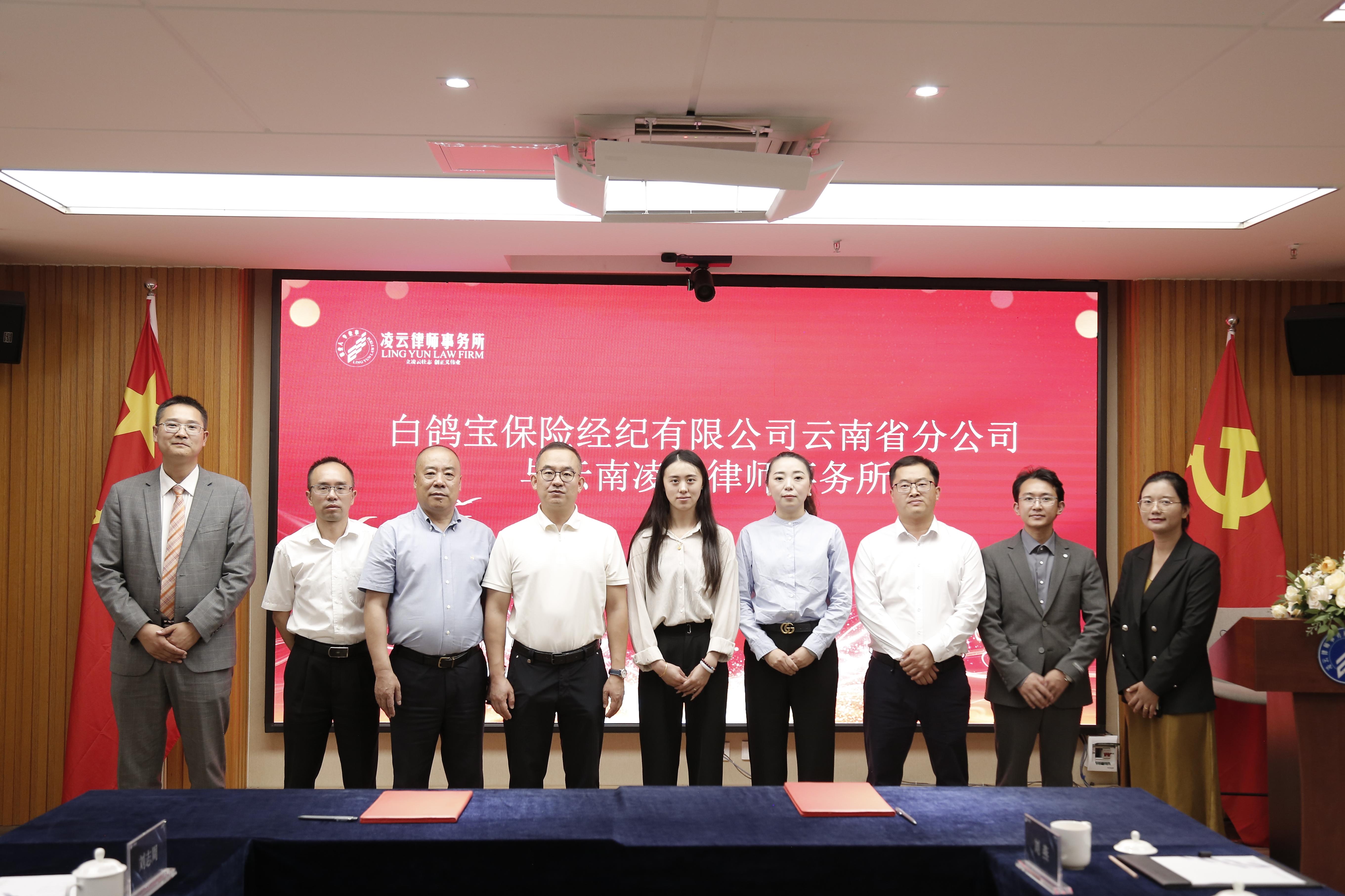 8月15日,白鸽在线旗下白鸽宝保险经纪有限公司云南省分公司与云南凌云律师事务所正式达成战略合作。凌云律师事务所党委书记、昆明办公室主任孙文杰,保险专业委员会主任、曲靖办公室主任刘志周等与白鸽宝云南省分公司负责人李薇、云南营销中心负责人刘燕等共同出席签约仪式,由孙文杰与李薇作为代表签署合作协议。