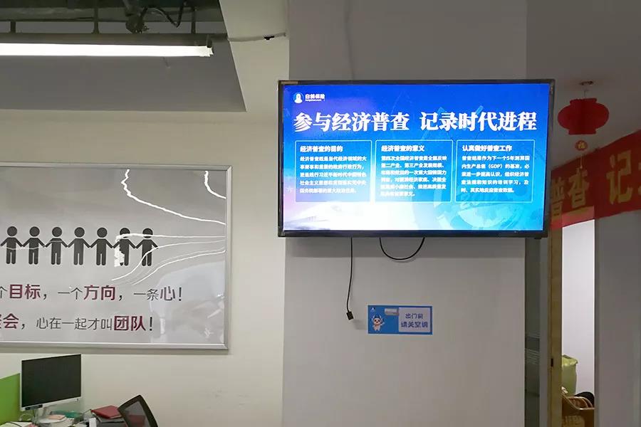 白鸽保险在企业会议室、办公区横幅宣传经济普查主题,并在办公区域多个LED宣传屏投放经济普查知识海报。普查数据,源于大家,发展成果,惠及你我。