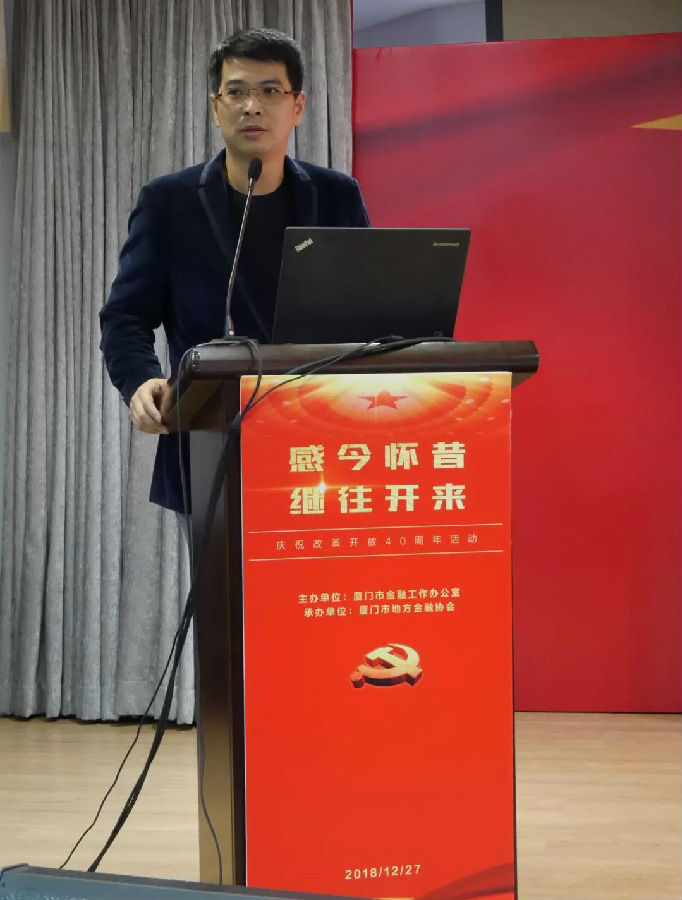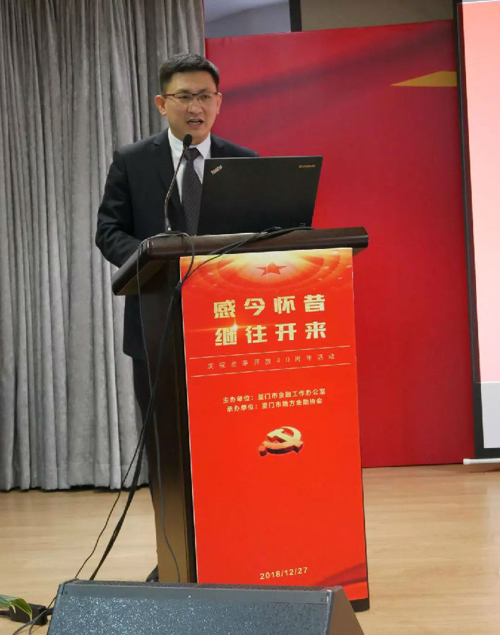 为进一步推动厦门市地方金融行业创新、合规、自律、有序发展,12月27日下午,厦门市地方金融协会在港务大厦19楼,召开了主题为“感今怀昔 继往开来”的庆祝改革开放40周年论坛活动。厦门市金融工作办公室副巡视员喻皓、地方金融协会会长徐智艺出席本次活动,活动由秘书长詹琳主持。白鸽保险董事长涂锦波应邀参与本次活动且作为会员单位发表讲话。